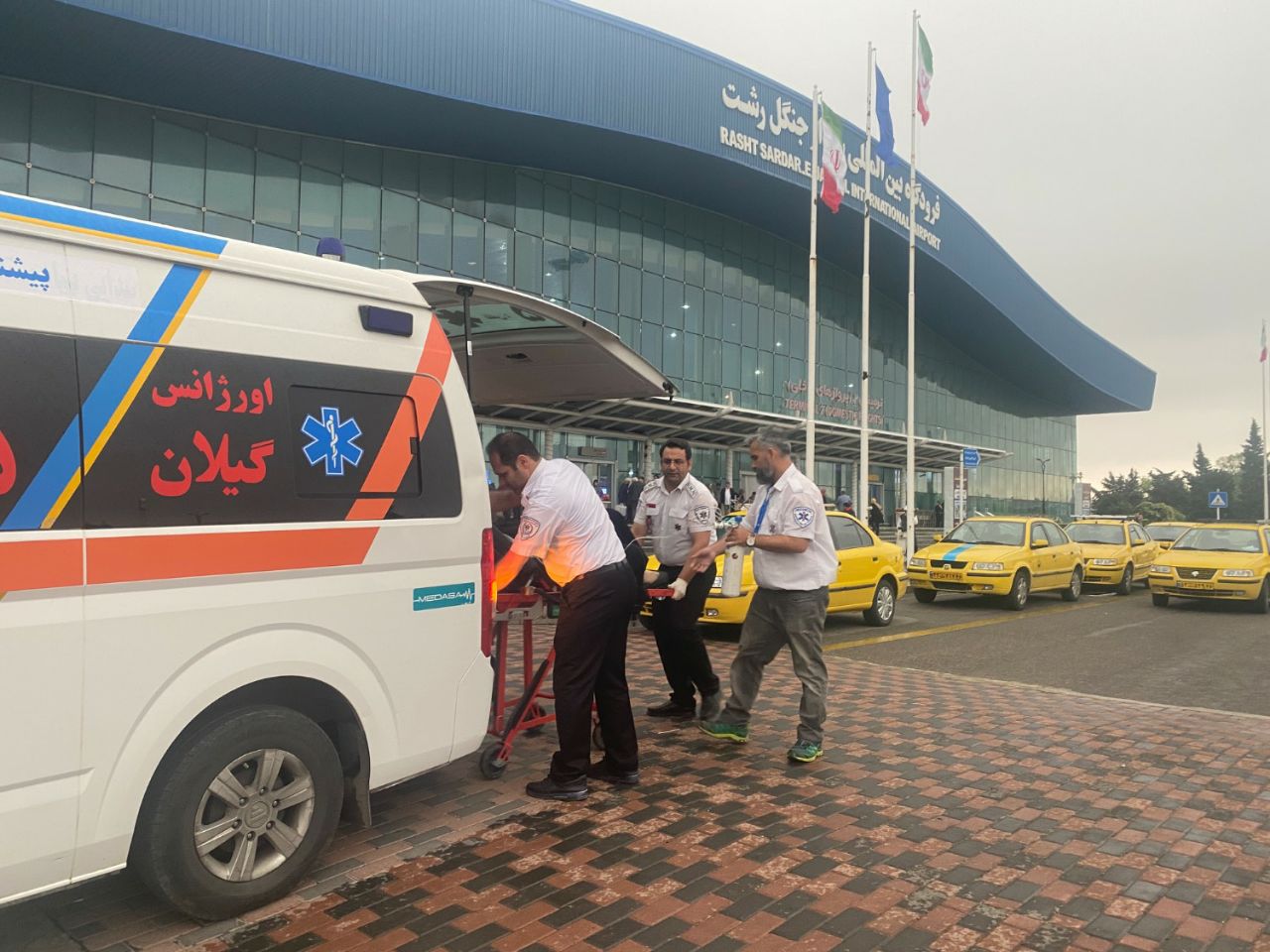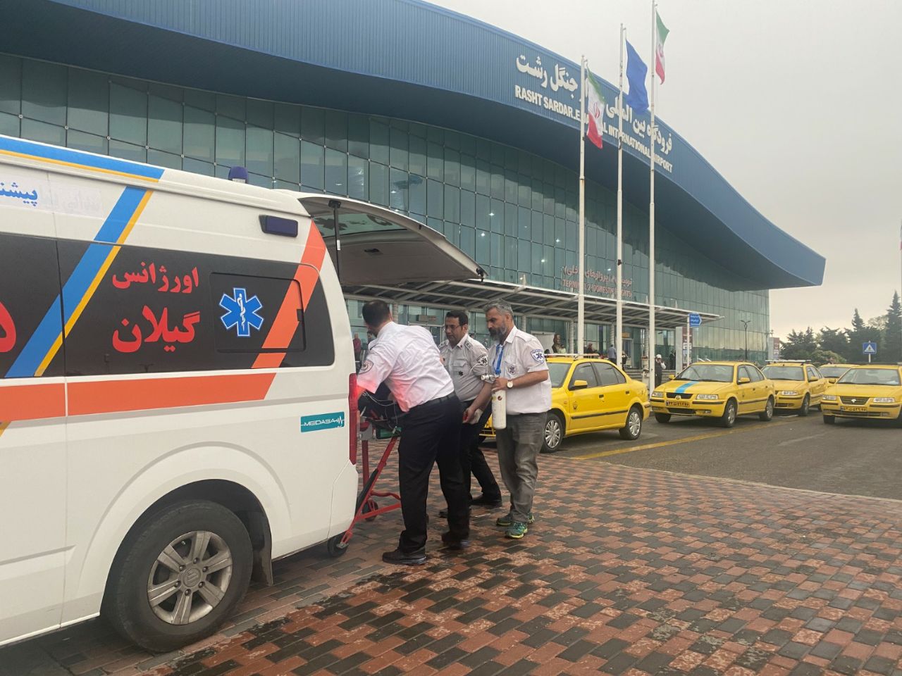 مادر باردار عراقی با مشکل خونریزی از هواپیما در فرودگاه رشت با دریافت خدمات درمانی به بیمارستان منتقل شد