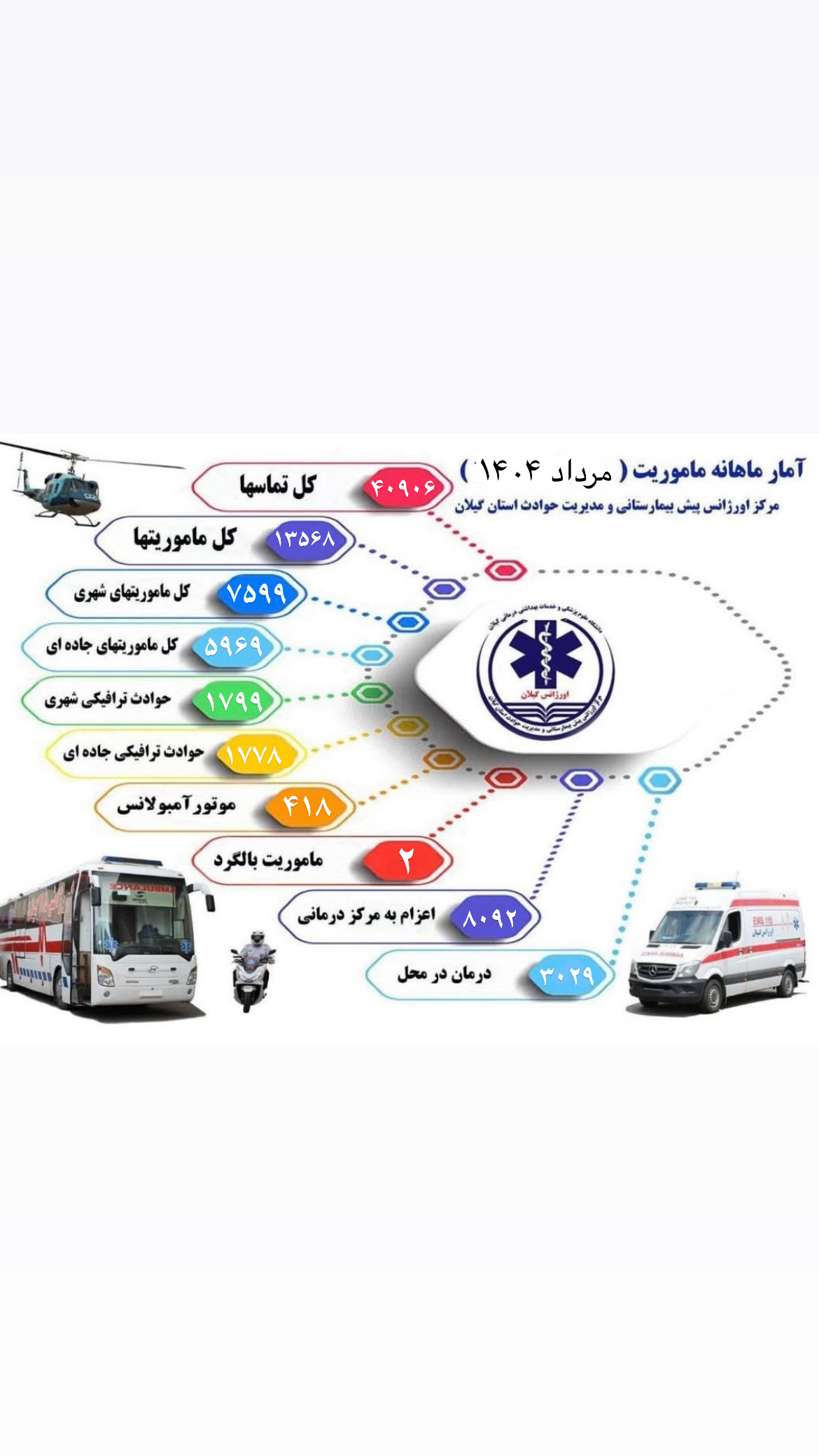 امار عملکرد اورژانس گیلان مرداد ماه۱۴۰۴ بیش از ۴۰ هزار تماس و ۱۳ هزار ماموریت مرداد ماه ۱۴۰۴ گروه خبری : خبر حوادث,گزارش تصویری,رویدادها,اخبار اختصاصی کد خبر : 143524 کپی لینک کوتاه کلمات کلیدی