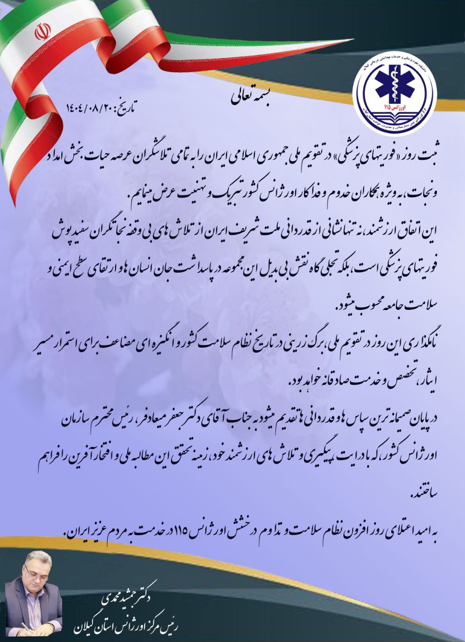 این روز یادآور نقش حیاتی نیروهای اورژانس در نجات جان انسانها، ارتقای سلامت جامعه و حضور بیوقفه آنان در خط مقدم امداد و نجات است.